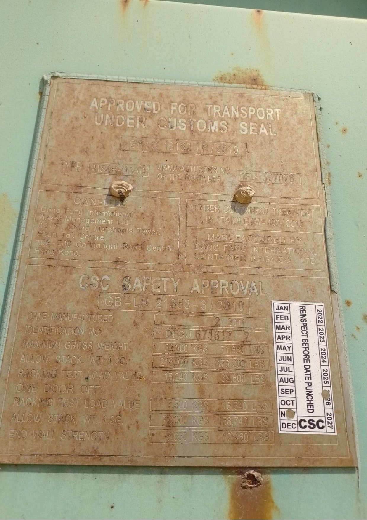 Contenedor marítimo de 40HC usado nacionalizado serial DFSU6716172 – Bogotá
